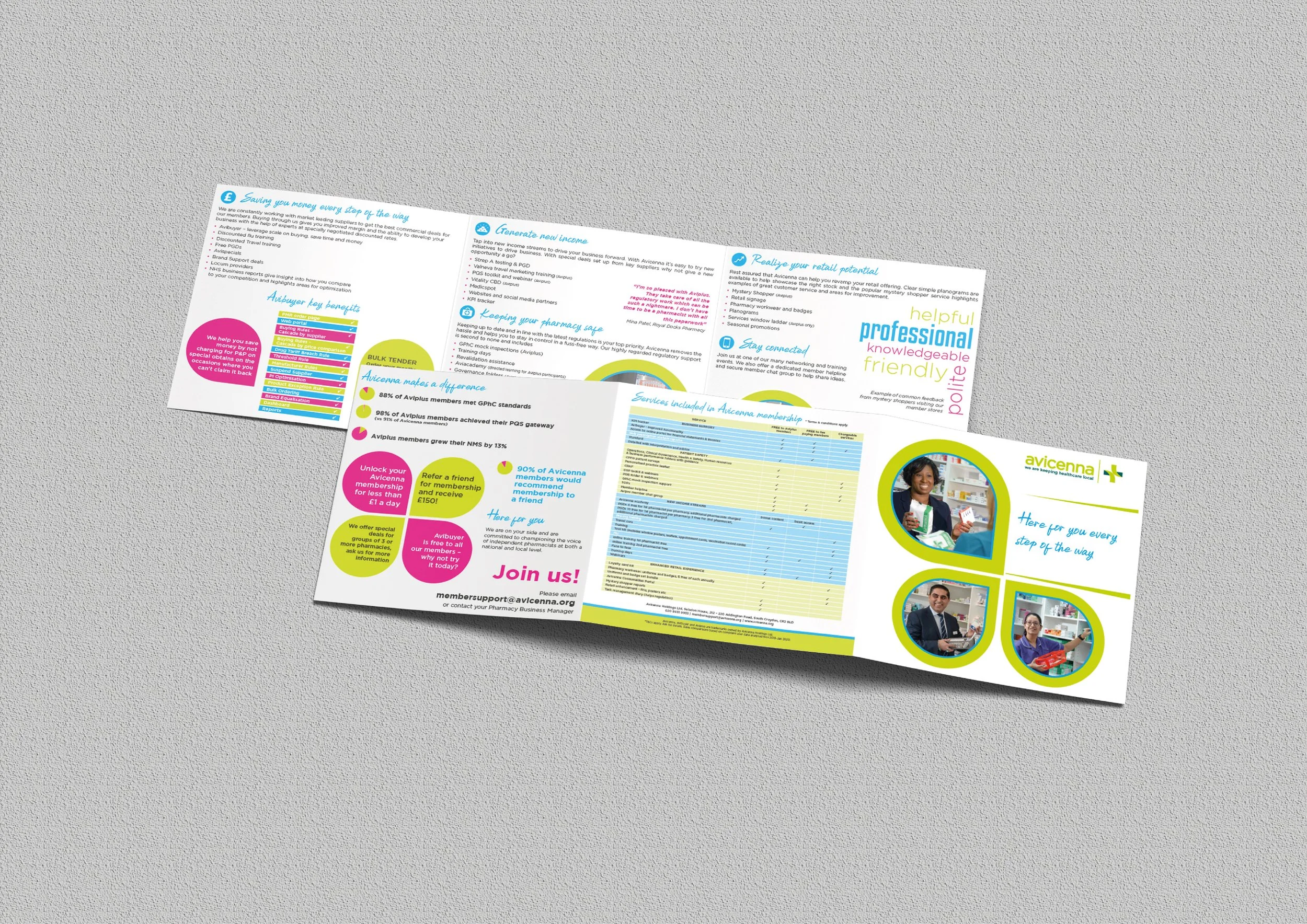 Avicenna is a nationwide pharmacy that Cherrill Print designed and printed a variety of info collateral using the brand guidelines supplied.